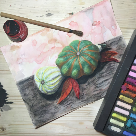 Little White Pumpkin and Two Gourds Original