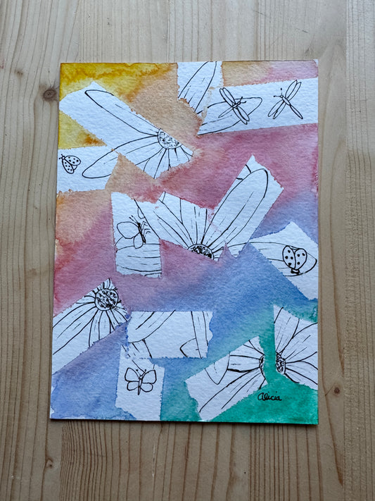 Peek-a-Boo Flowers and Insects Original Ink Drawing