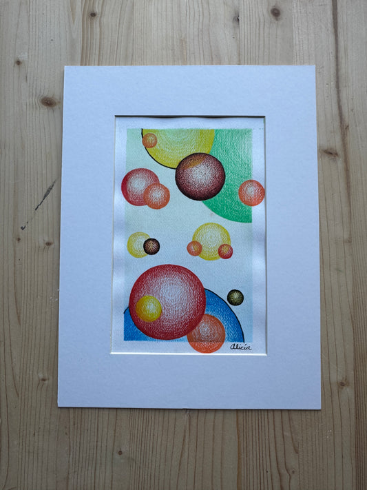 Colorful Spheres Original Colored Pencil and Ink Artwork