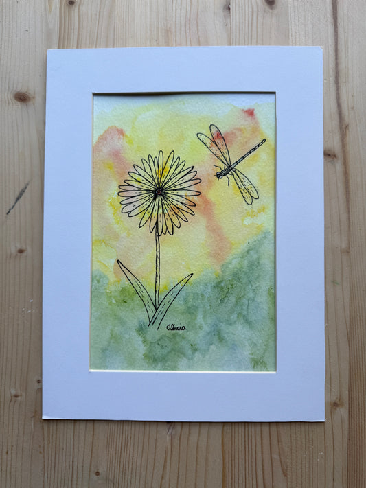 Dragonfly and Flower Original Ink Artwork