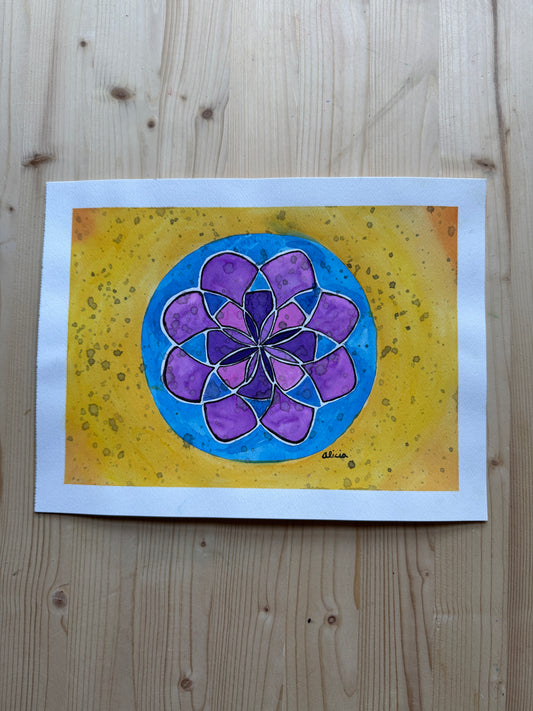 Watercolor and Ink Mandala Original Artwork