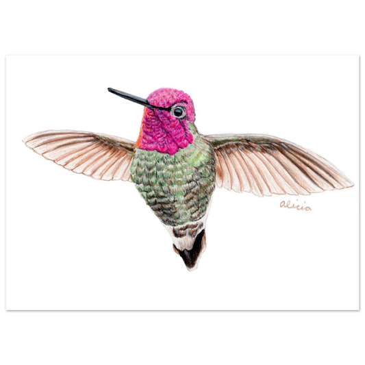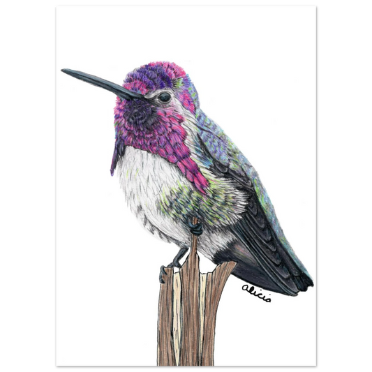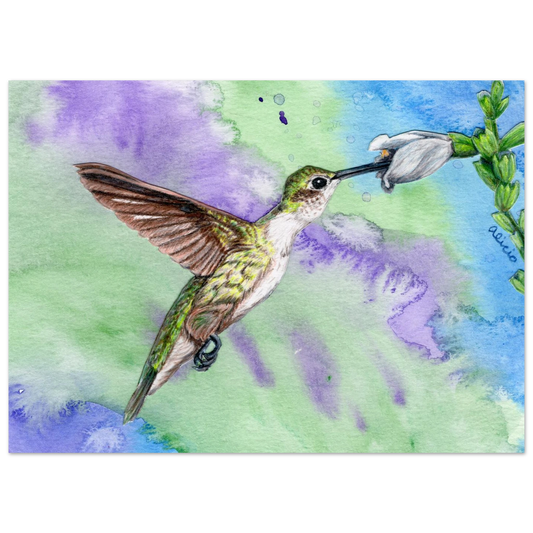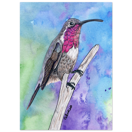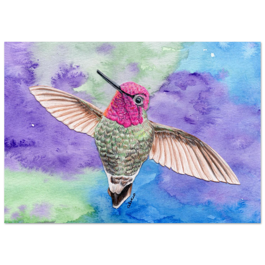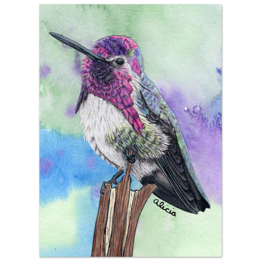 Hello Anna's Hummingbird (Watercolor Background) Print