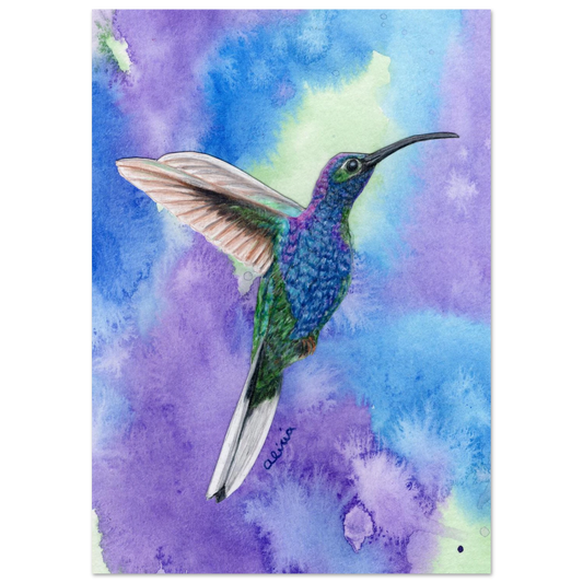 Stunningly Blue Hummingbird (Watercolor Background) Print