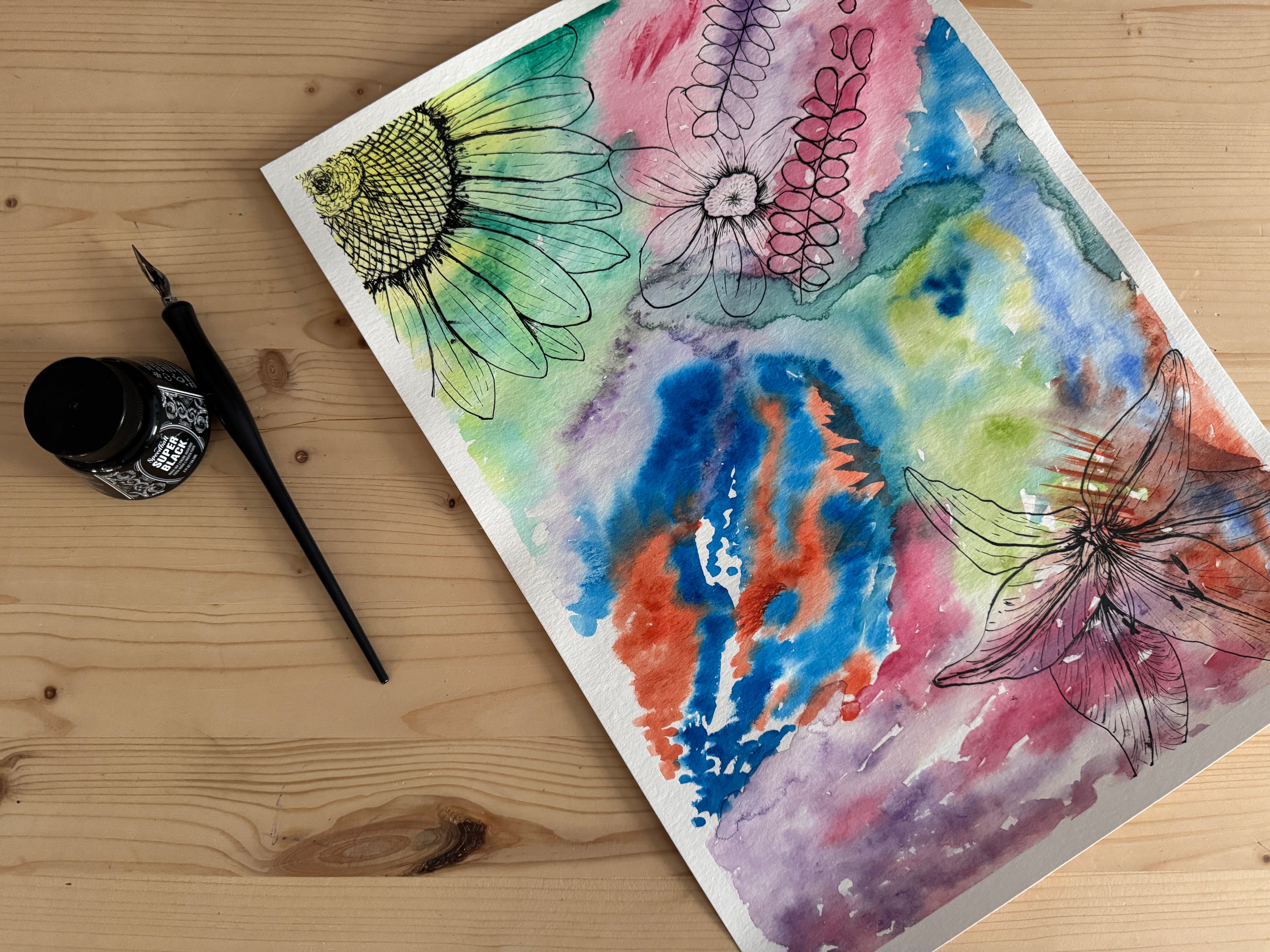 I use this mixed media paper for 80% of my art. It has the right texture and weight for colored pencil and watercolor or ink stains.